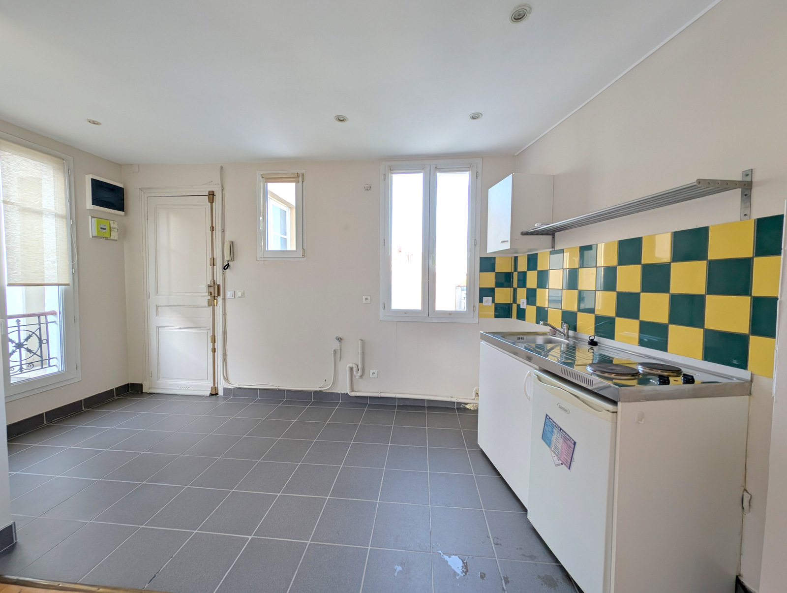 PARIS 75017 / Guy Moquet – Brochant. Fraichement rénové et isolé, 2 pièces comprenant beau séjour avec coin cuisine, chambre et salle d’eau avec wc. Au 5ème étage ( ss asc.) dans un bel immeuble en pierre de taille. Entièrement sur cour, calme et ensoleillé. A 4 min du metro Guy Moquet ou Brochant. DPE: E-317  / GES: B-10. Honoraires: 510,00€ à la charge du locataire(s) et 1093,00€ à la charge du propriétaire. Dépôt de garantie: 1 093,00€