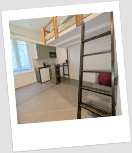 PARIS 75014 / Mouton-Duvernet – Pernety. Ancien 2 pièces réhabilité dans un esprit loft , comprenant entrée, coin chambre, séjour...